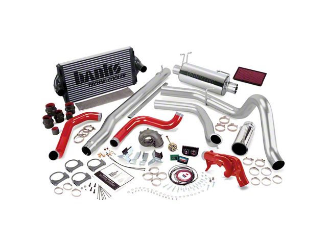 Complete Performance and Handling Solution. The Banks Power PowerPack Bundle with Single Exhaust System and Chrome Tip is an all-in-one performance upgrade engineered for the early 1999 7.3L Powerstroke F-250 Super Duty with a manual transmission. This bundle improves overall engine efficiency and enhances vehicle control. It includes a robust sway bar made from solid, heat-treated chromoly steel that delivers superior stability under load, while the free-flowing exhaust system reduces backpressure and increases horsepower.