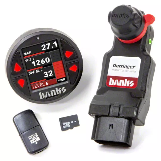 Advanced Performance Enhancement. The Banks Power Gen 2 Derringer Tuner with iDash DataMonster offers cutting-edge performance upgrades for your 6.6L Duramax Chevrolet Silverado 2500 HD model. This tuner enhances engine efficiency and power output with multiple adjustable power levels, allowing changes on the fly to suit driving conditions and needs.