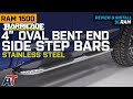 Adds Function and A Clean Appearance. Enhance the look of your Dodge RAM 1500 Mega Cab by upgrading to Barricade's 4" Stainless Steel Oval Bend Side Steps. Designed to give you and your passenger's with a practical step, these nerf bars are a stylish upgrade over your factory pair. This pair of step bars feature a clean, curved designed and are equipped with two large step pads to help provide reliable footing for anyone when entering or exiting your truck. These steps are coated with a stainless steel finish that will easily complement factory or aftermarket trim for a sleek yet refined look.