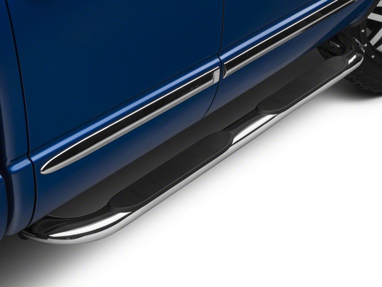 Durable Construction. These reliable side steps are crafted from durable 4" stainless steel. Each step is equipped with a large step pad for secure footing. The tubes are finished in a tough, stainless steel finish to provide exceptional style, as well as corrosion resistance.