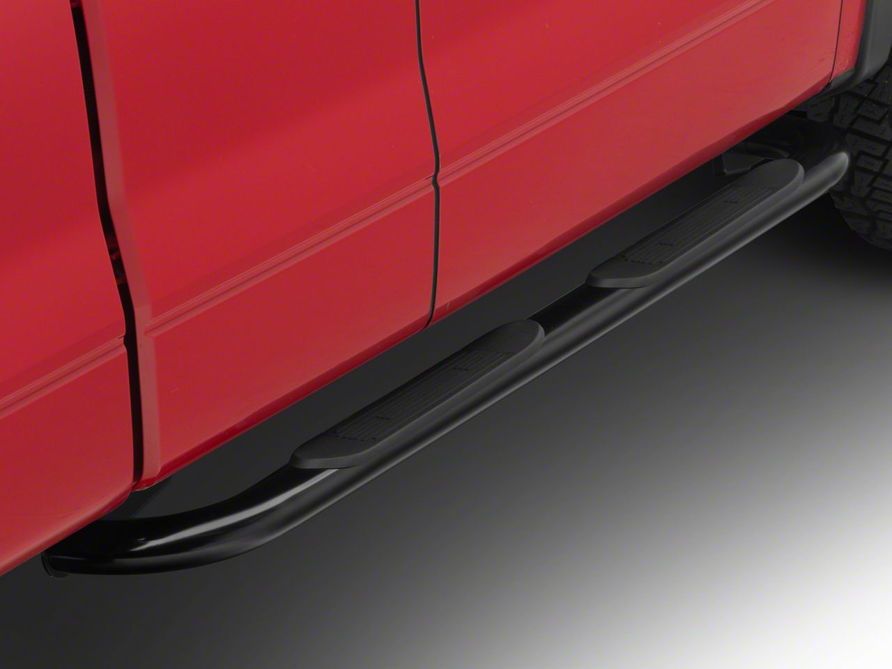 Functional Style. Barricade's 4 inch Oval Bend Side Step Bars are designed to give your truck the extra boost you or your passengers need. They feature a clean, curved designed and are equipped with two large step pads to help provide reliable footing for anyone when entering or exiting your F-150. These 4 inch Tubular Steps are finished in a handsome gloss black finish that will easily complement factory or aftermarket trim for a sleek yet refined look.