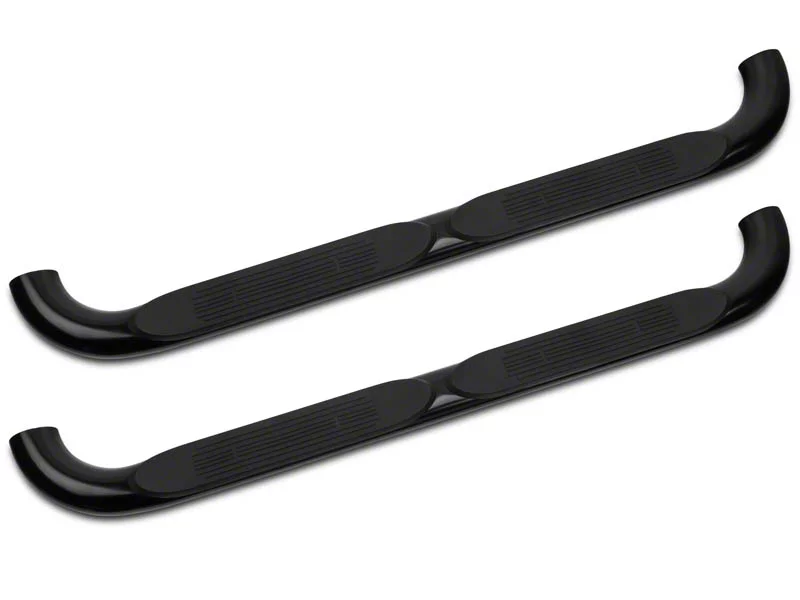 Functional Style. Enhance the appearance of your F-150 by upgrading to Barricade's 4 Inch Oval Bend Side Steps. Designed to provide you and your passenger's with a practical step, these nerf bars will also add impressive style. They feature a clean, curved designed and are equipped with two large step pads to help provide reliable footing for anyone when entering or exiting your F-150. These 4 inch Tubular Steps are finished in a handsome gloss black finish that will easily complement factory or aftermarket trim for a sleek yet refined look.