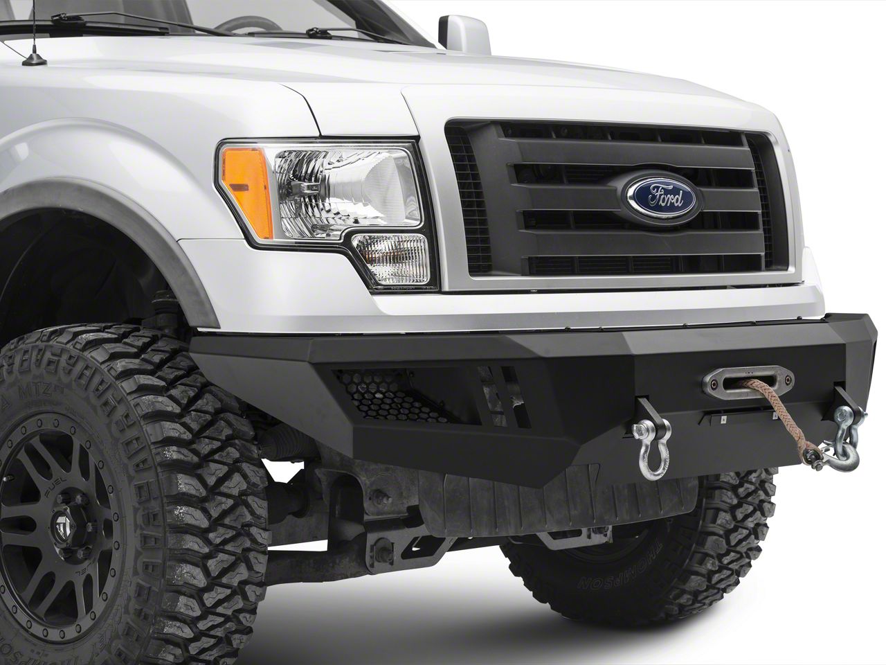 Rugged Styling. Add a rugged off-road appearance to your 2009-2014 Ford F-150 by installing a Barricade Off-Road Extreme HD Front Bumper. This fabricated Front Bumper features two high strength D-Ring mounts with 9,500 lb. rated D-Rings and a built-in winch plate that is capable of supporting a 12,000 lb. winch. Additionally this Barricade Front Bumper includes (2) high powered LED fog lights for complete confidence in any night time adventure.