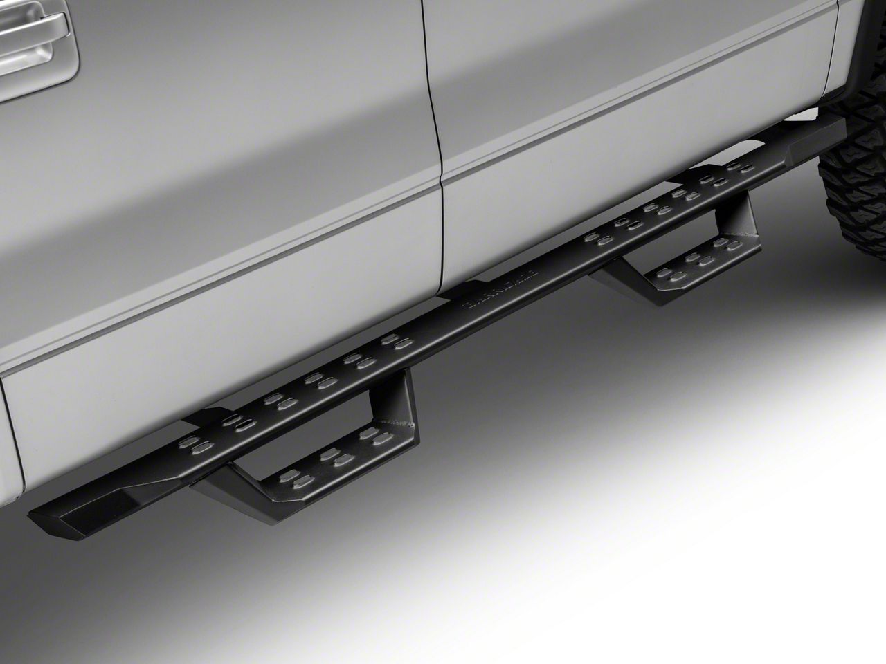 Function and Style. Get in and out of your F-150 SuperCrew with ease by installing a set of Barricade's HD Overland Drop Side Step Bars. With an angular drop stepped design, these black textured Side Steps not only provide easy entry into your lifted Ford, but they also give your F-150 a rugged off-road appearance. As an added bonus, these HD Overland Drop Side Step Bars can provide additional protection from both road and trail hazards.