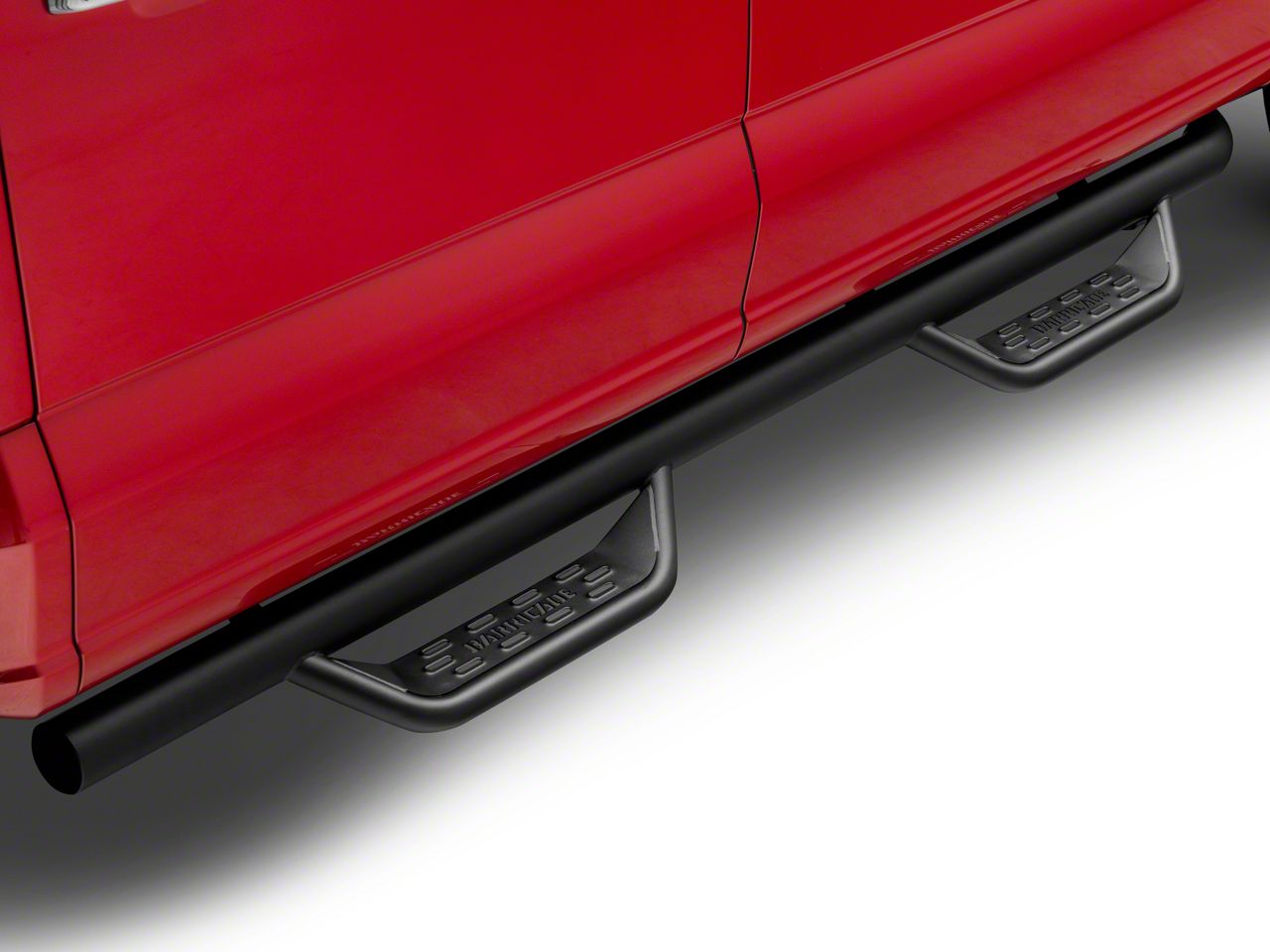 Step On Up. Make it much easier to get in and out of your 2015-2026 Ford F-150 SuperCrew by installing a set of Barricade Tubular Drop Steps. With an angular drop stepped design, these fine textured black Side Steps not only provide easy entry into your F-150, but they also give your ride a rugged off-road appearance. As an added bonus, these Tubular Drop Steps can provide additional protection from both road and trail hazards.