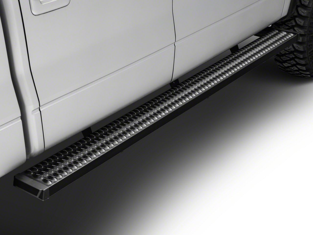 Rugged Steel Construction. These Barricade XD Running Boards are manufactured from heavy duty steel for superior strength and feature a serrated tread pattern on the top step plate for maximum traction . These Running Boards are then completed in a black powder coated finish for aggressive good looks and long lasting corrosion resistance.