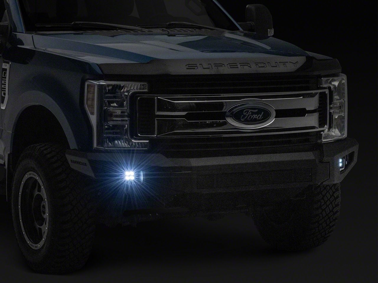 Rugged Front-End Protection. Add aggressive styling to your 2017-2022 Ford F-250 Super Duty by upgrading to a Barricade HD Modular Front Bumper. This HD Modular Bumper includes a pair of high powered LED cube fog lights. Designed to easily replace your factory bumper, this heavy duty Front Bumper is ideal for both street and trail applications.