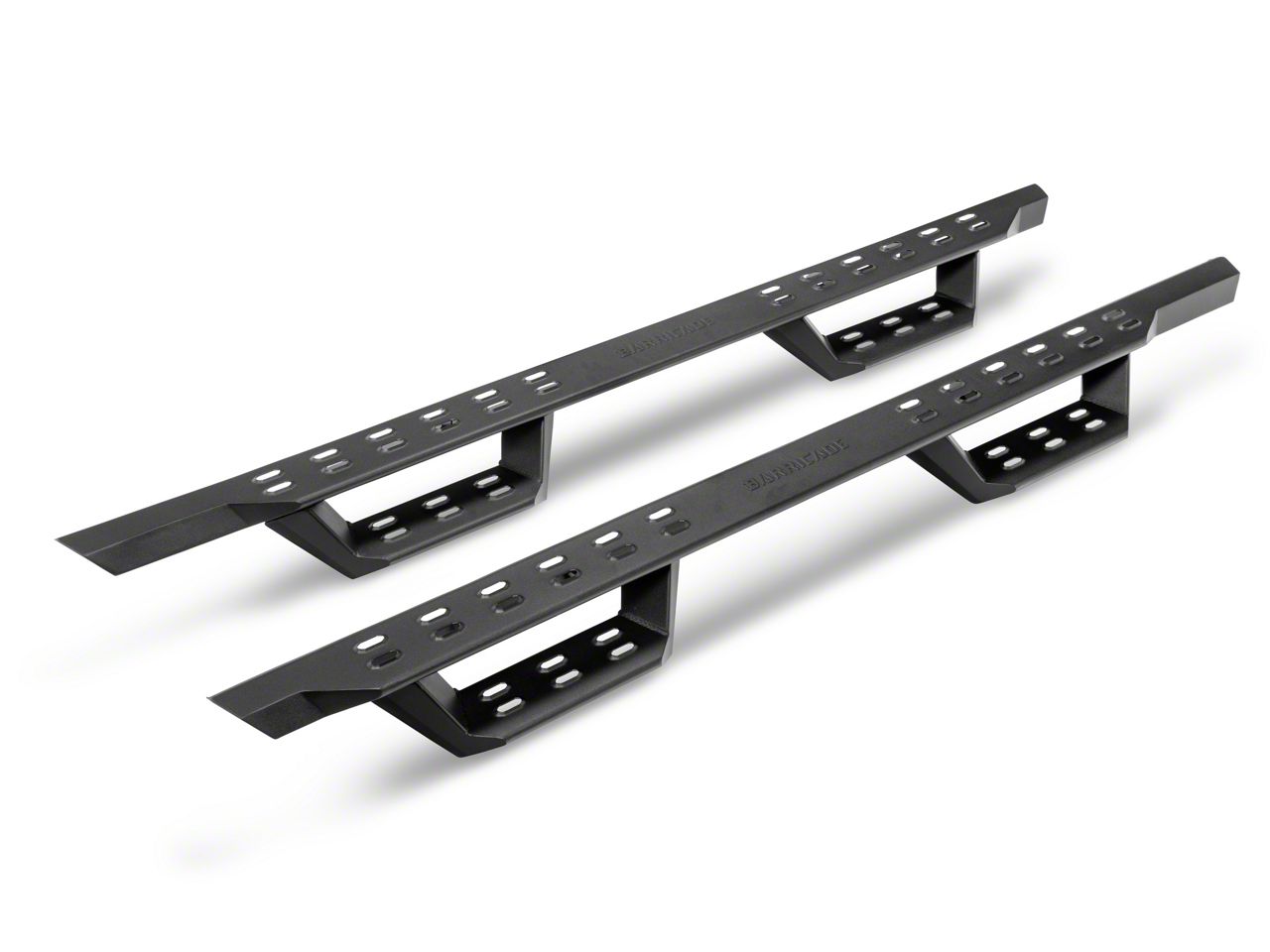 Heavy Duty Construction. Barricade manufactures their HD Overland Drop Side Step Bars to precise specifications from heavy duty steel plate for superior strength and rigidity. Barricade then completes their Side Step Bars in a high-grade, textured black powder coated finish for long lasting durability.