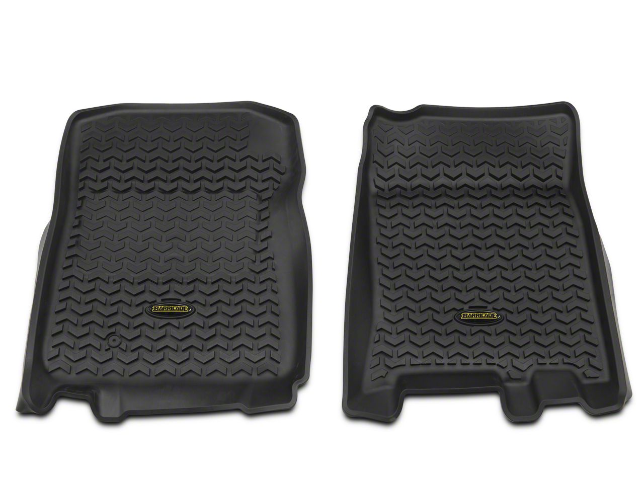 Reliable All Weather Protection. A set of Black Barricade Front Floor Liners are an excellent way to prevent wear, tear and spills from damaging your 1997-2003 Ford F-150's carpets. Designed with an aggressive, chevron shaped tread pattern, these Floor Liners feature high walls to contain spills, mud, dirt or snow. These Barricade Liners provide intense style and a clean appearance to keep your F-150’s interior looking new longer.
