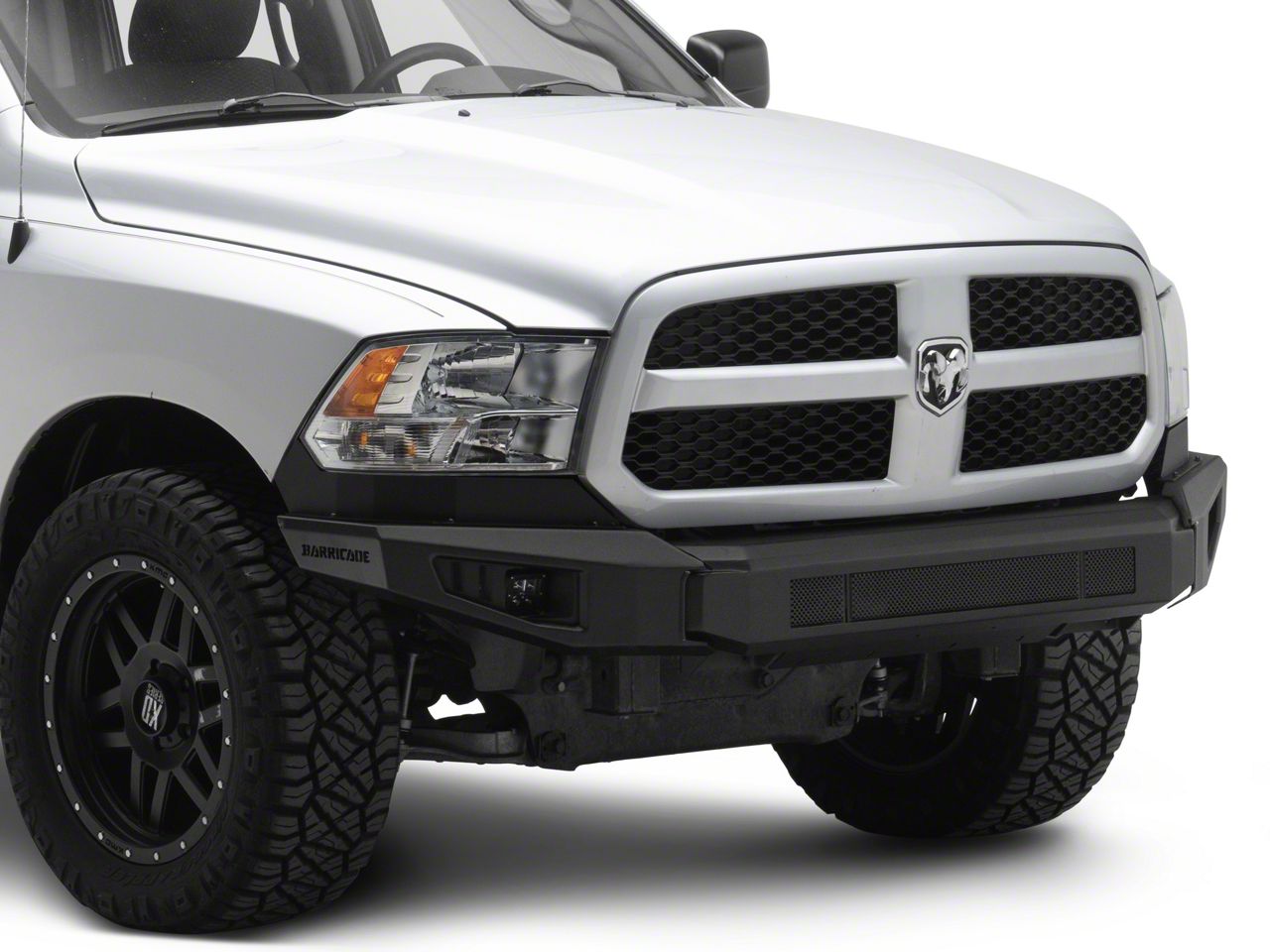 Rugged Front-End Protection. Add aggressive styling to your 2013-2018 RAM 1500 by upgrading to a Barricade HD Modular Front Bumper. This HD Modular Bumper includes a pair of high powered LED cube fog lights. Designed to easily replace your factory bumper, this heavy duty Front Bumper is ideal for both street and trail applications.