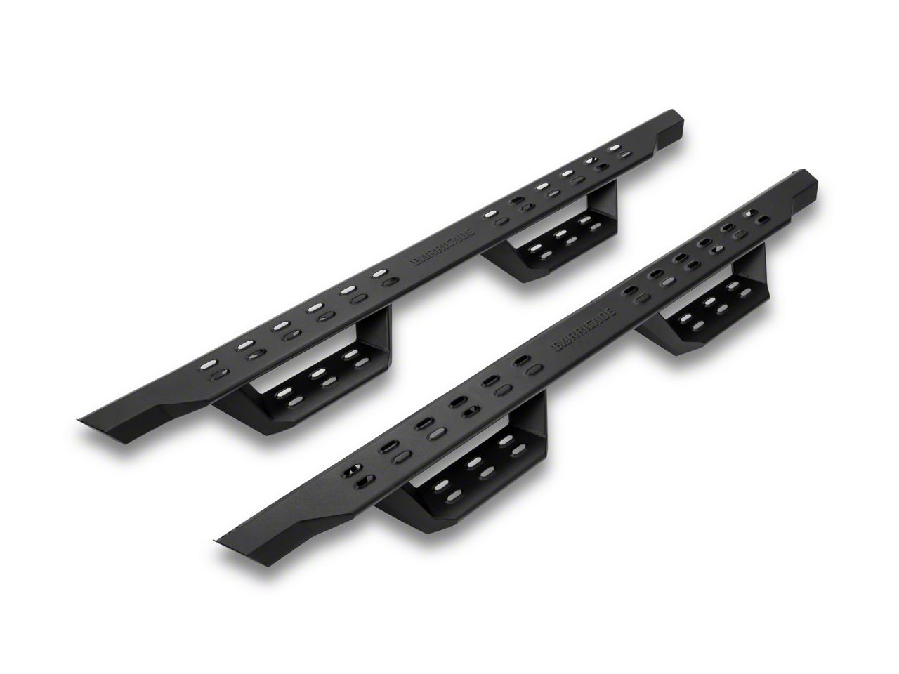 Heavy Duty Construction. Barricade manufactures their HD Overland Drop Side Step Bars to precise specifications from heavy duty steel plate for superior strength and rigidity. Barricade then completes their Side Step Bars in a high-grade, textured black powder coated finish for long lasting durability.