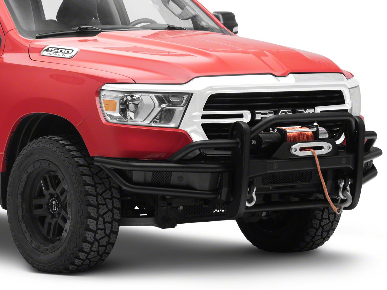 Application. This Barricade HD Push Bar is designed for use on 2019-2024 RAM 1500 models, excluding Rebel and TRX, equipped with the Barricade HD4 Front Bumper and Winch Conversion only. Includes HD Push Bar only, Bumper and with Winch Conversion sold separately. Not compatible with other brands of bumpers.