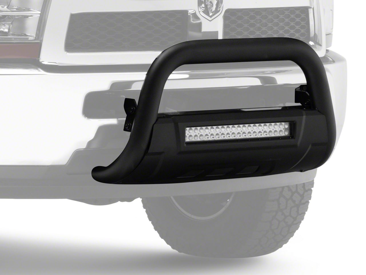 Light and Armor. The Barricade HD Bull Bar with Skid Plate and 20-inch Dual-Row LED Light Bar will give your RAM added protection through both armor and illumination. The Bull Bar and integrated Skid Plate will give you extra shields against road and trail hazards and look great doing it. The Light Bar provides auxiliary lighting, which always means a safer experience.