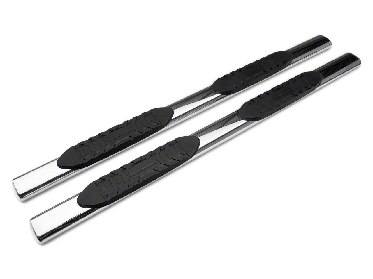 Heavy-Duty Construction. Manufactured from heavy-duty, 5-inch diameter oval stainless steel tubing for strength, these Barricade Off-Road Side Step Bars are completed in a durable, mirror-polished finish for aggressive good looks and long-lasting corrosion resistance.