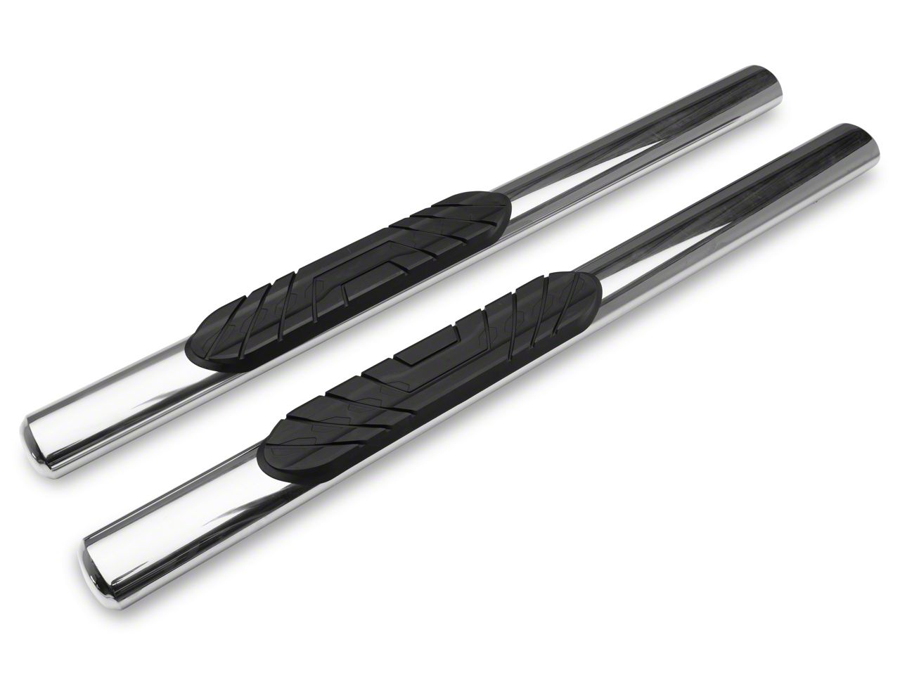 Heavy-Duty Construction. Manufactured from heavy-duty, 4-inch diameter oval stainless steel tubing for strength, these Barricade Off-Road Side Step Bars are completed in a mirror-polished finish for aggressive good looks and long-lasting corrosion resistance.