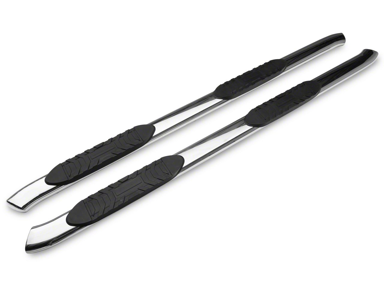 Heavy Duty Construction. These Barricade Side Steps are manufactured from heavy-duty, 5-inch diameter, oval stainless steel tubing for superior strength and rigidity. Barricade then completes its Side Steps in a mirror-polished finish for classic good looks and long-lasting corrosion resistance. As part of the final assembly, Barricade installs a set of rugged non-slip step pads.