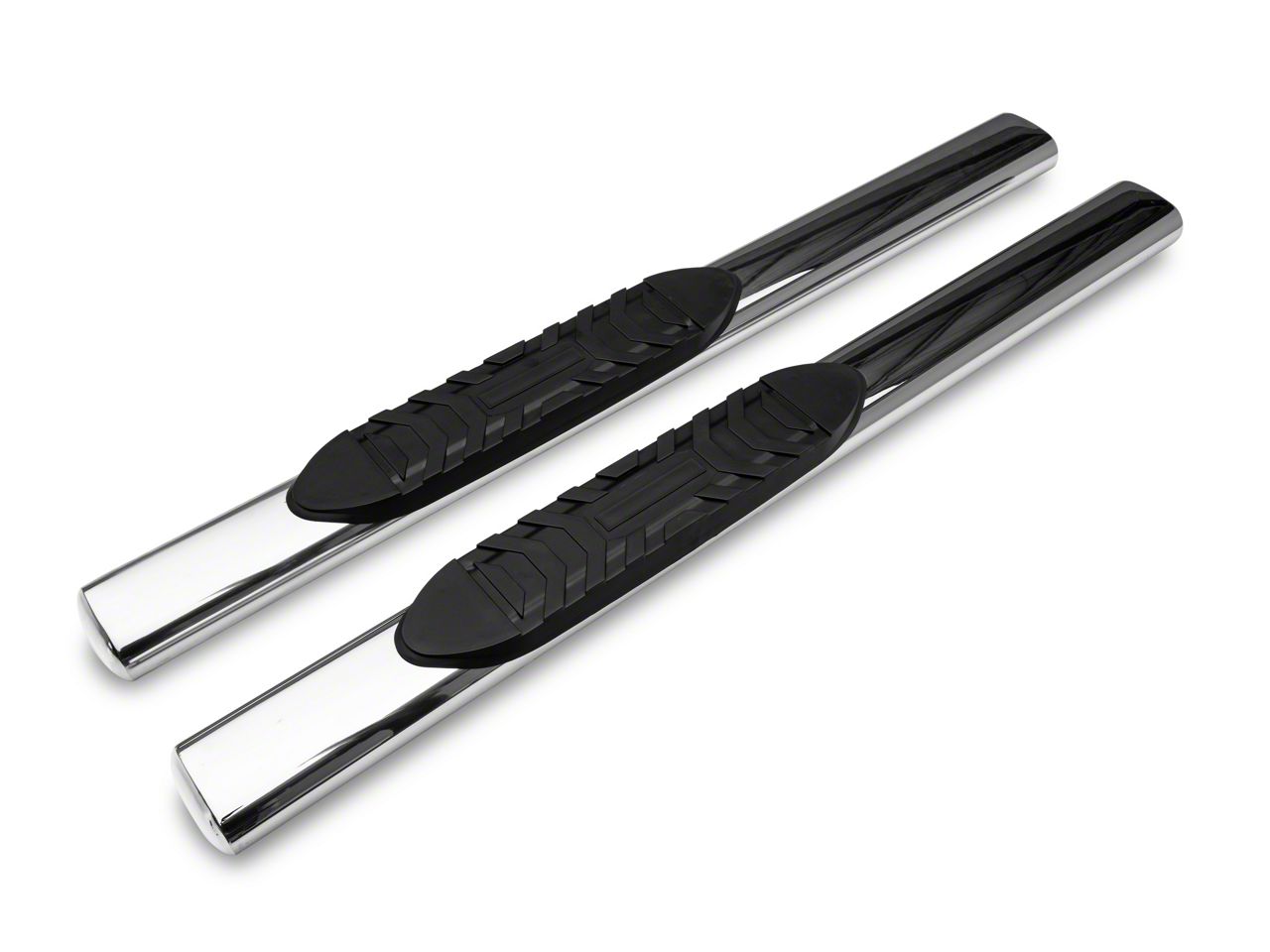 Heavy-Duty Construction. Manufactured from heavy-duty, 5-inch diameter oval stainless steel tubing for strength, these Barricade Off-Road Side Step Bars are completed in a durable, mirror-polished finish for aggressive good looks and long-lasting corrosion resistance.