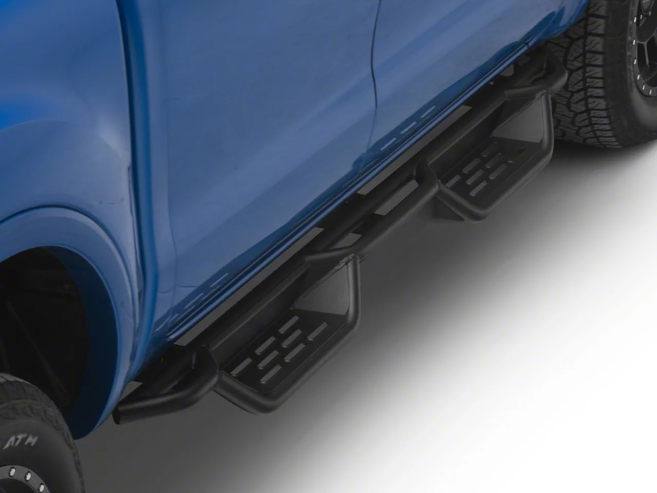 Rugged Style and Function. A set of Barricade's NB1 Drop Side Step Running Boards are an ideal way to make getting in and out of your SuperCrew Ford Ranger a much easier task. With an angular drop stepped design, these black textured Side Steps not only provide easy entry into your Ranger, but they will also give it a rugged off-road appearance. As an added bonus, these NB1 Drop Side Step Running Boards provide additional protection from both road and trail hazards.