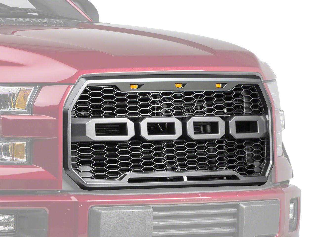 Stylish LED Accents. This grille features three high mount amber accent LED lights as well as a wiring harness that easily attaches to your F-150's factory headlight harness. The eye-catching LEDs will automatically turn on with your running lights.