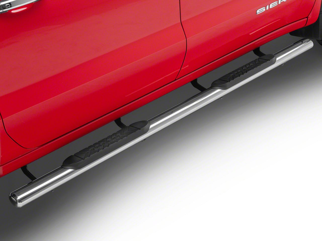 Application. These Barricade E-Series Oval Straight End Side Step Bars; Stainless Steel are designed to fit 2019-2026 GMC Sierra 1500 Crew Cab models. Driver and passenger are included.