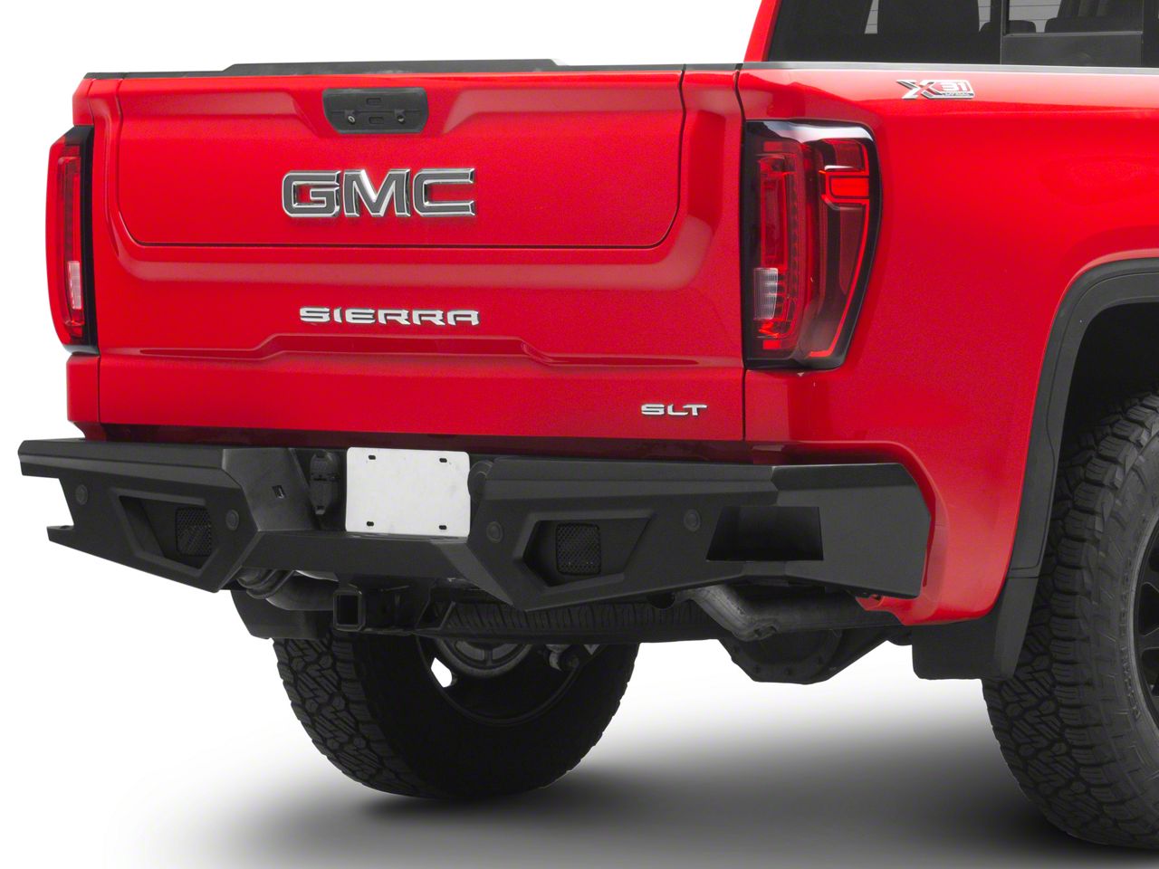 Rugged Off-road Styling. Barricade's HD Off-road Rear Bumper is an excellent way to add rugged, off-road styling to your 2019-2026 GMC Sierra 1500. Designed to easily replace your factory bumper, the HD Off-road Rear Bumper features the same exact styling as Barricade's HD Off-road Front Bumper. Built tough from heavy duty steel plate, this Barricade Bumper is ideal for street, work and off-road applications.