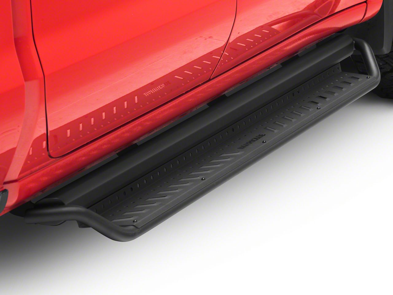 Rugged Style and Function. Barricade's Open Trail HD Running Boards are an excellent way to make getting in and out of your GMC Sierra 1500 Crew Cab a much easier task. With a wide design, these Running Boards not only provide easy entry into your Sierra, but they will also give it a rugged off-road appearance. As an added bonus, these Open Trail HD Running Boards provide additional protection from both road and trail hazards.