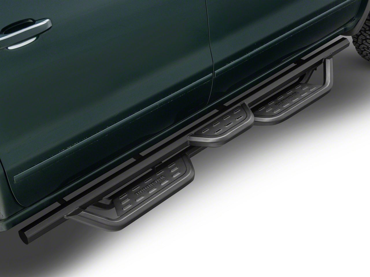 Function and Style. Make getting in and out of your 2007-2018 GMC Sierra 1500 Crew Cab much easier by installing a set of Barricade's TCX HD Drop Side Step Bars. With an angular drop stepped design, these Side Steps not only provide easy entry, but they also give your rig a rugged off-road appearance. The convenient middle step provides easy roof access. As an added bonus, these Drop Side Step Bars can provide additional protection from both road and trail hazards.