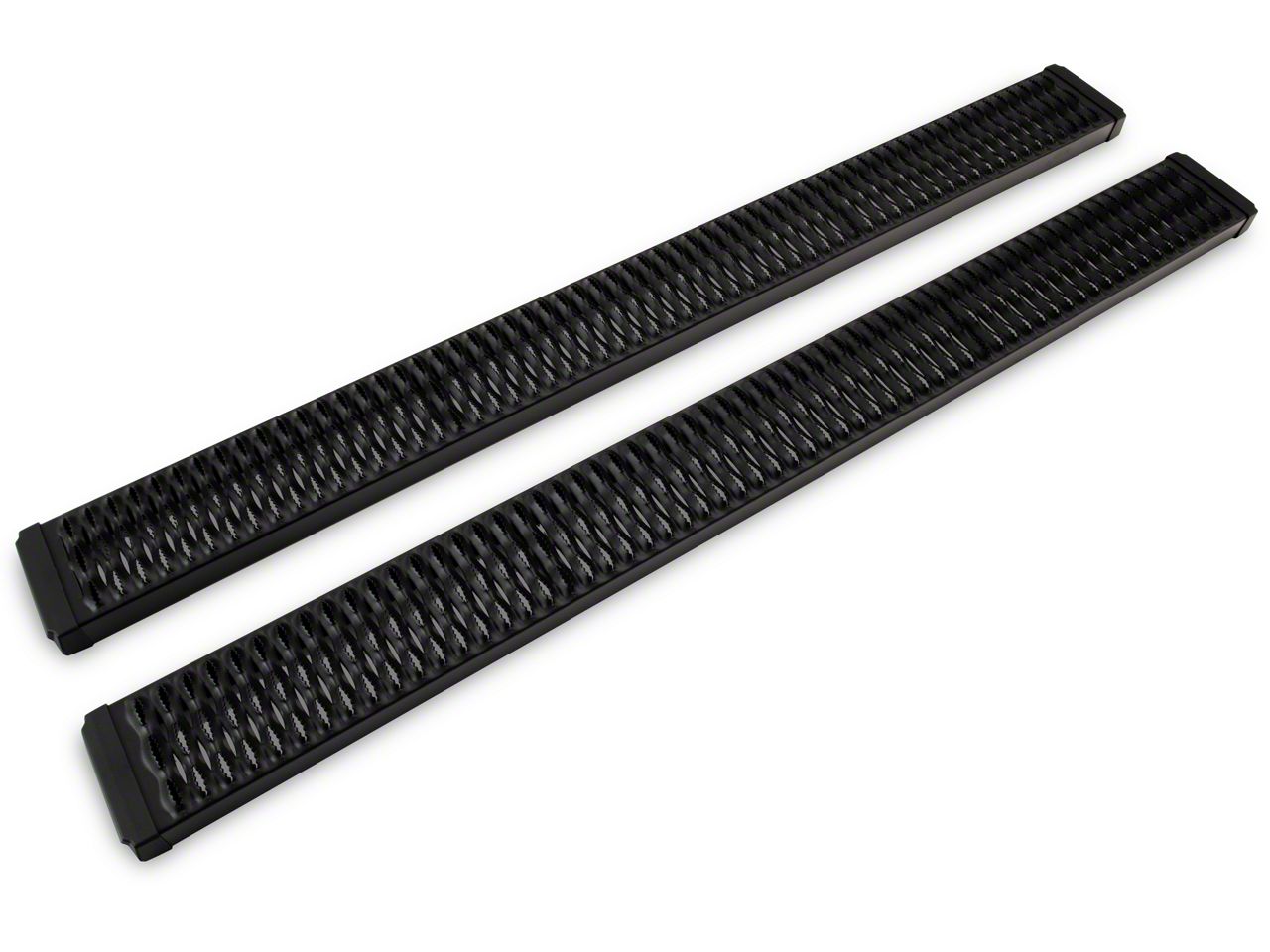 Rugged Steel Construction. These Barricade XD Running Boards are manufactured from heavy duty steel for superior strength and feature a serrated tread pattern on the top step plate for maximum traction . These Running Boards are then completed in a black powder coated finish for aggressive good looks and long lasting corrosion resistance.