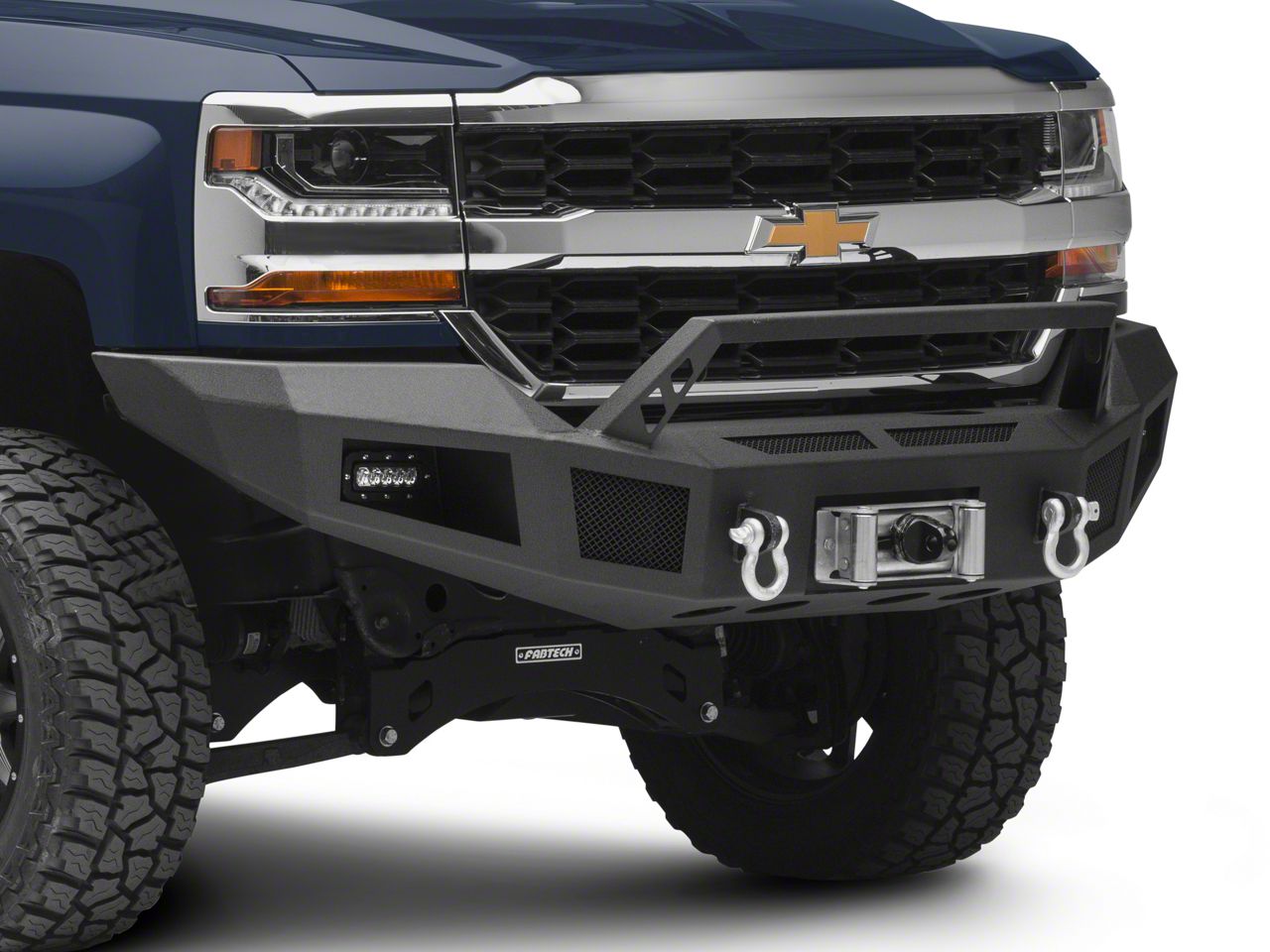 Rugged Styling. A great way to add rugged off-road styling to your 2016-2018 Chevy Silverado is by installing a Barricade HD Front Bumper. Designed with the intrepid off-roader in mind, this Bumper features a built-in winch plate that is capable of supporting a 12,000 pound winch. Additional features include an integrated grille guard hoop, LED fog lights and two high strength D-Ring mounts. Loaded with all these great features, this Barricade HD Front Bumper is ideal for both street and off road use.