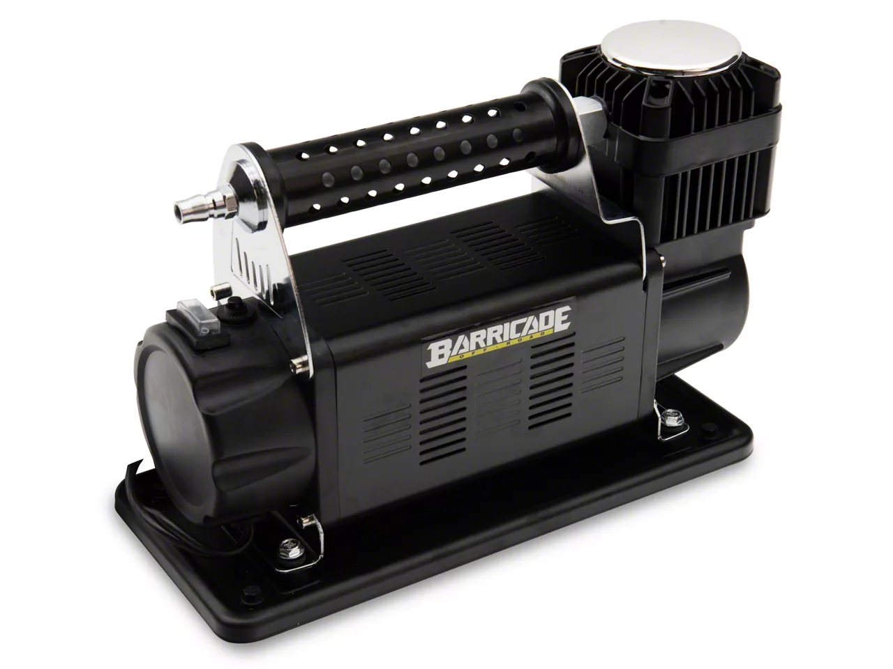 Ideal for Off-Road. The Barricade 150PSI Single Air Compressor makes a great off-roading companion to keep in your truck. Its power and portability allows you to quickly air-down or air-up 35-inch tires and larger, faster than other compressors. The compressor is capable of producing a maximum of 160 liters per minute.