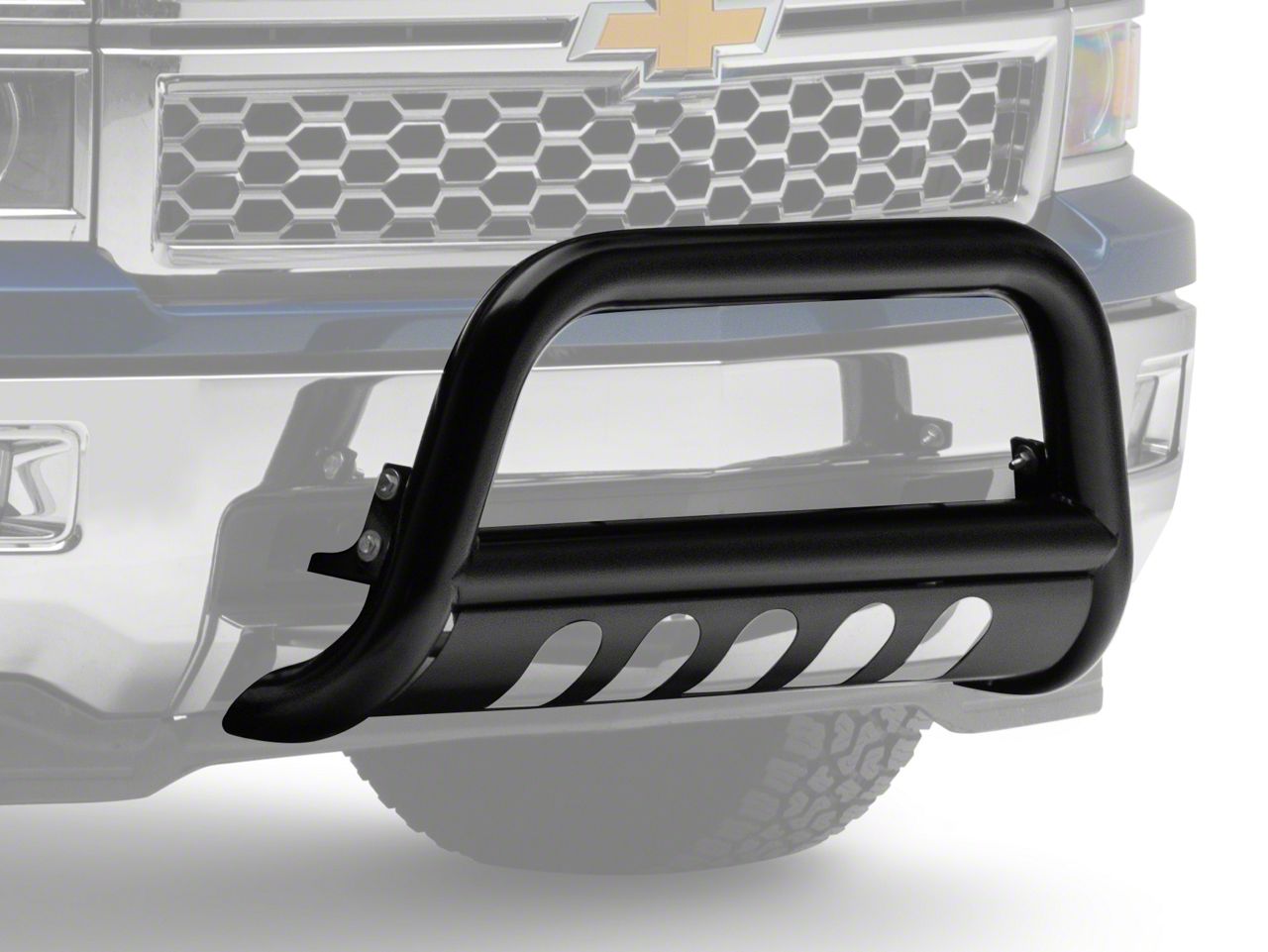 Strength and Defense. The Barricade 3 in. Bull Bar - Black gives your 2007-2018 Chevy Silverado extra protection on the front end and under carriage. This Bull Bar shields against hazards on or off the road, and, looks great doing it.