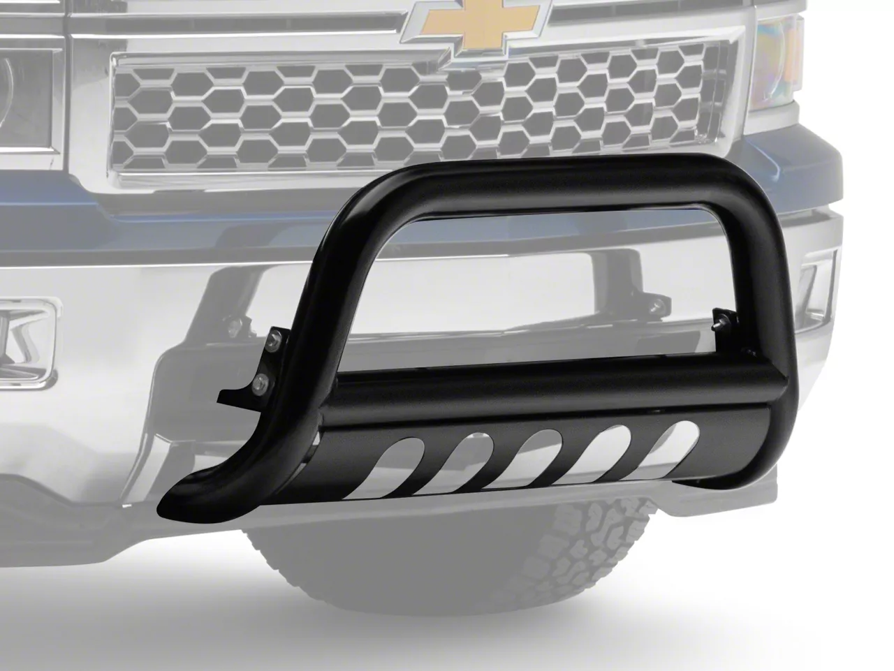 Easy, Bolt-on Installation. Barricade's Bull Bars are engineered to be a direct bolt-on upgrade using just basic hand tools, so there is no drilling required for a clean straight forward installation. All hardware for installation is included making this an easy job for anyone to complete. Silverados that are not equipped with tow hooks will require some cutting to the factory plastic lower bumper cover.