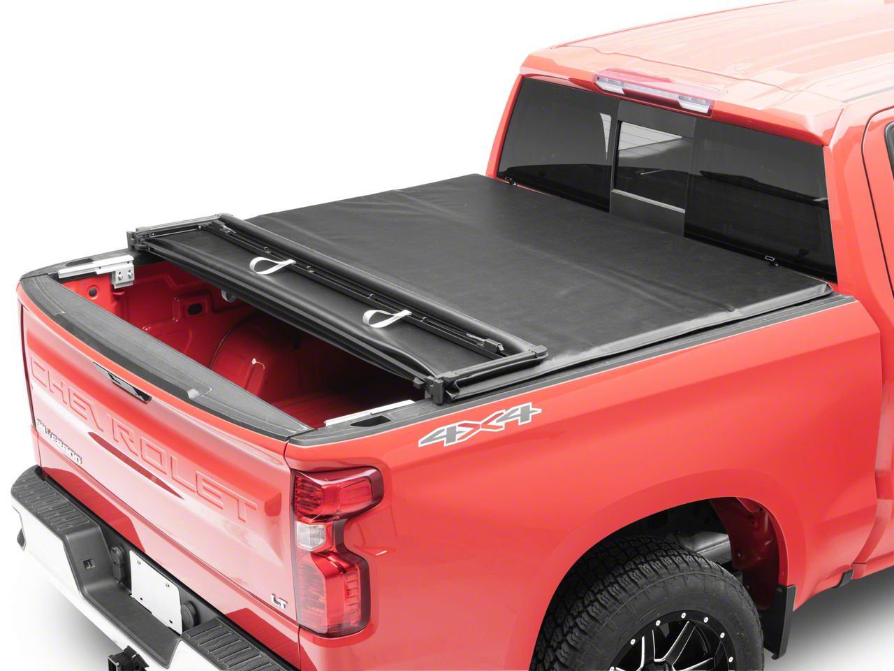 Protect Your Cargo. Discreetly hide cargo in the bed of your 2019-2026 Chevrolet Silverado 1500 while enhancing its exterior styling with a Barricade Soft Folding Bed Cover. This Barricade Bed Cover features a convenient Quad-Fold design that can be folded up to access your bed, or when hauling larger items. As an added bonus, you may even see up to a 10% increase in fuel mileage because of its aerodynamic design.