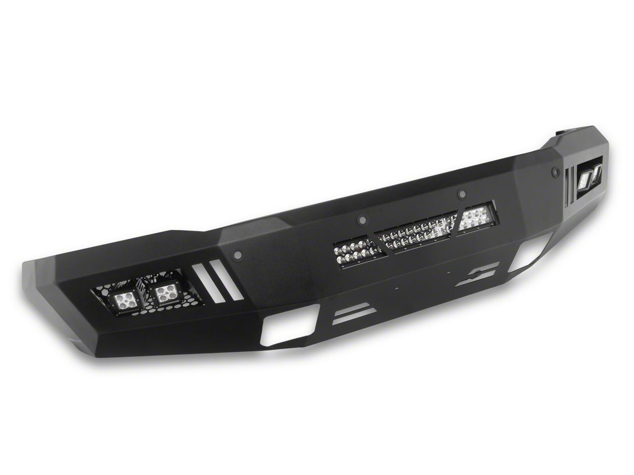 LED Fog Lights. This Barricade Front Bumper includes (2) 3-inch square LED Fog Lights. The fog lights are equipped with 5 Watt CREE LEDs to provide an intense 6000K light temperature. Each light is rated IP67 providing reliable waterproof performance, thanks to a tough aluminum housing sealed with a polycarbonate lens.