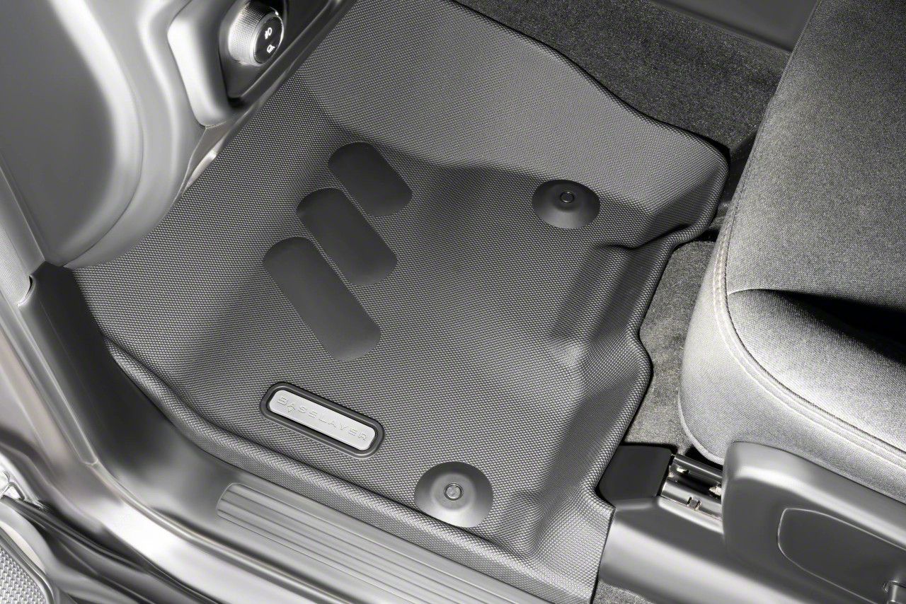 All-Weather Protection. Engineered to withstand the harshest conditions, these BaseLayer Custom-Fit All Weather Front and Rear Floor Liners with Gray Logo; Black are made from durable, high-density materials that resist cracking, warping, and fading. Whether you're dealing with muddy boots, spilled drinks, or snow-covered shoes, the BaseLayer liners act as a barrier against the elements, keeping your interior clean and dry year-round.