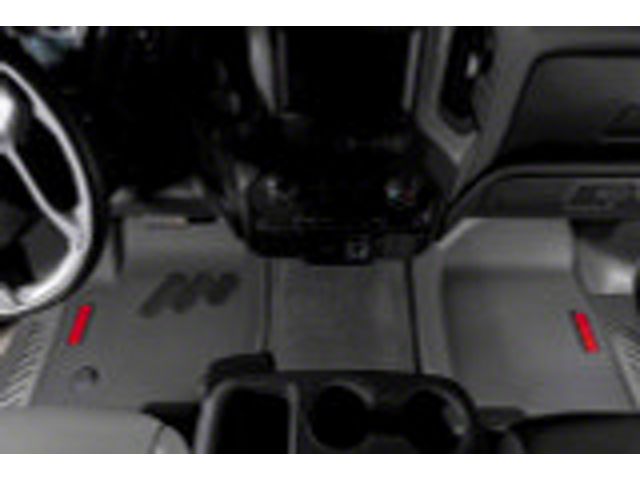 Durable All-Weather Protection. The BaseLayer Custom-Fit All Weather Front and Rear Floor Liners with Red Logo provide comprehensive protection for your Chevrolet Silverado 1500 Crew Cab's interior. Designed to handle mud, water, and debris, these liners maintain a clean cabin while enhancing the aesthetics with their sleek black color and subtle red logo.