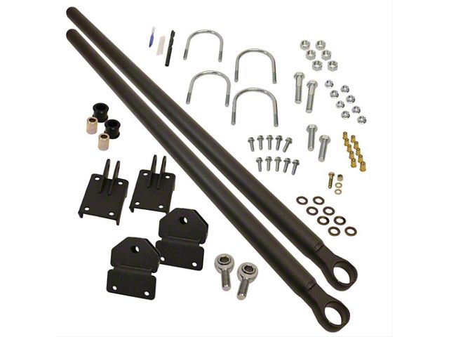 A truck's power doesn't always make it to the road. When the rear axle is allowed to rotate, wheel hop and loss of traction can occur. Get that lost power to the ground with a BD Traction Bar Kit! BD traction bars are engineered to precisely follow the OEM spring travel sweep and axle rotation. This minimizes ride stiffness, and ensures no adjustment is needed when pulling or hauling! Bolt on and built to last, with 2-inch OD tube and the highest quality QA1 heavy duty American-made rod ends rated for 28,000lbs each! Polyurethane bushings provide direct loading without excessive movement, unlike spring loaded designs. Whether you're towing, running a lift kit, bigger tires, high horsepower, competitive pulling or drag racing - make sure to stay in control of that suspension with a BD Traction Bar Kit.