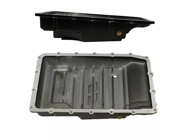 Construction and Appearance. Constructed from heavy-duty aluminum, this transmission pan is built for durability and strength. It features a tough powder-coat finish that enhances its resistance to corrosion and wear, ensuring long-lasting performance and a clean look under the vehicle.