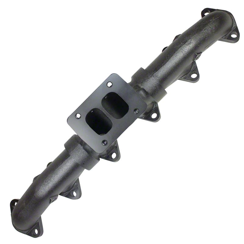 Replacement manifolds with larger T4 and T6 flanges for changing out the stock turbo. The turbo stays in same stock location. Fully divided pulse manifold made from high-silicon ductile iron is designed to withstand extreme temperatures and vibration. Great for performance trucks wanting to increase airflow. Designed using modern technology utilizes pulse flow for quicker turbo spool and increased power. Precision slip joints allow the manifold to expand and contract, which reduces cyclic thermal fatigue and greatly increase manifold longevity.