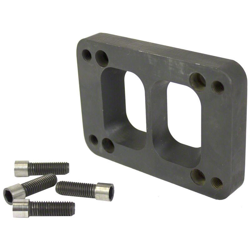Our adapter flange makes for an inexpensive alternative to replacing the Manifold and allows for quicker changes back and forth from T4 to T3 turbos. The large foot print of T6 turbo can be bolted to a T4 Manifold or a T4 Turbine Diverter Valve with our dual throat adapter flange.