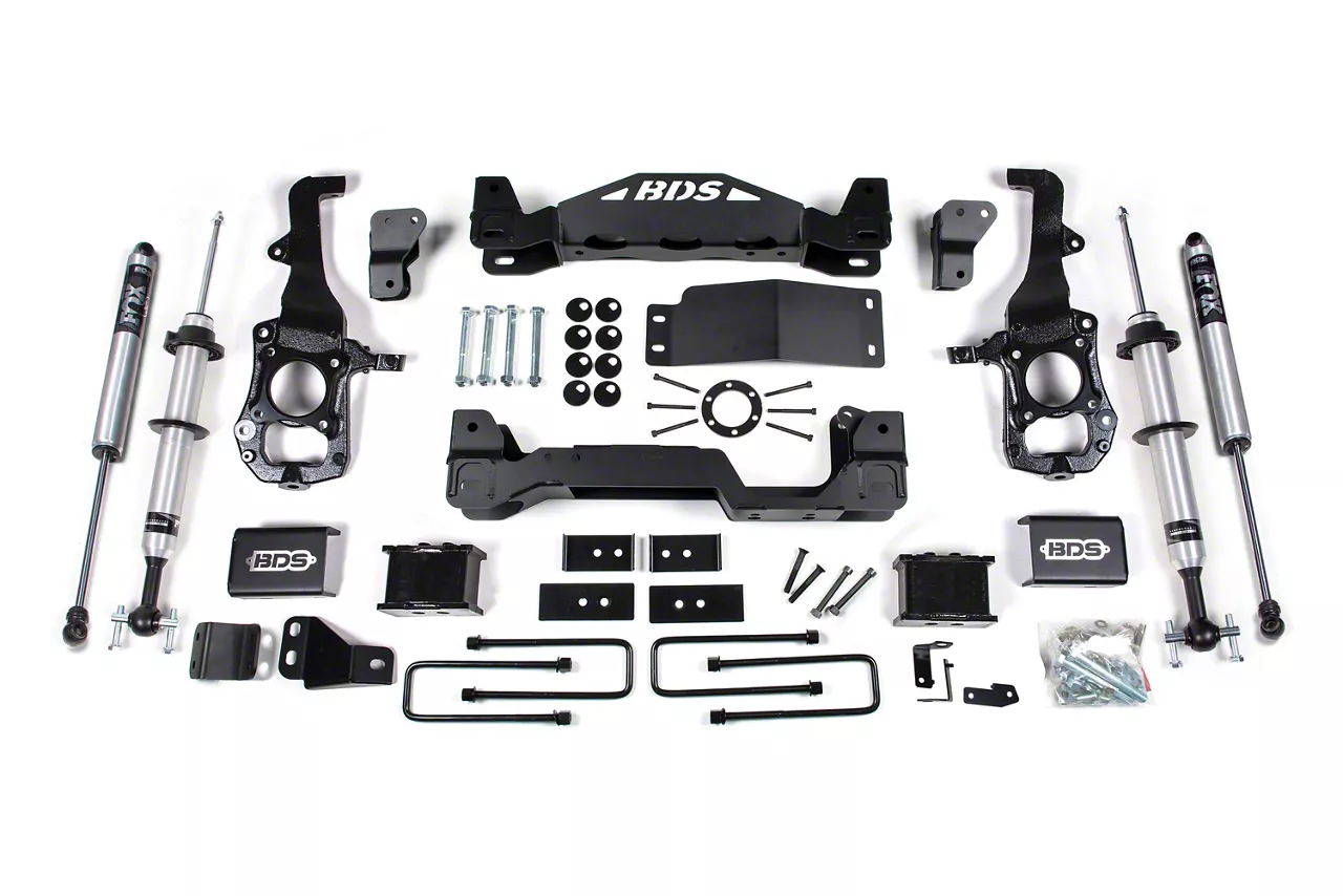 Aggressive Stance and Improved Off-Road Capability. Transform your F-150 with the BDS 6-Inch Suspension Lift Kit. This kit provides a 6-inch front and 4-inch rear lift, giving your truck an aggressive stance while improving ground clearance for off-road adventures. The included FOX 2.0 IFP struts and shocks ensure superior handling and ride quality, whether you're on rough trails or smooth highways.