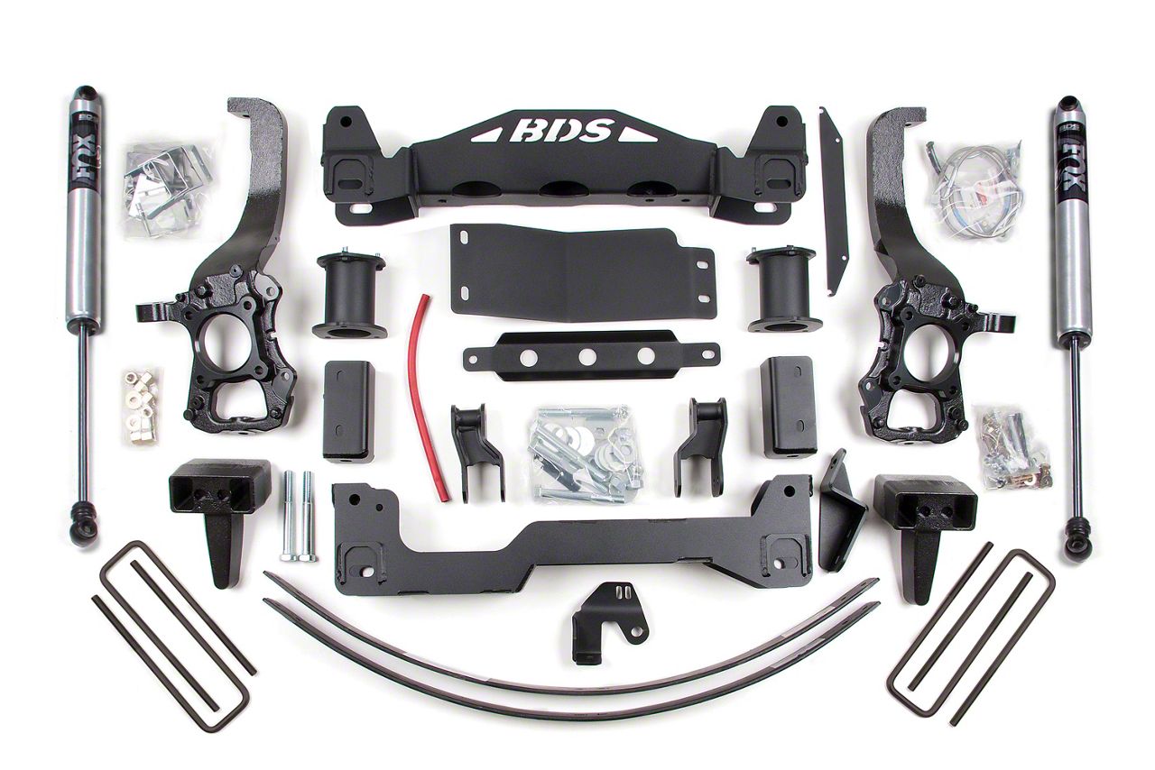 Enhanced Ground Clearance and Performance. Transform your F-150 with the BDS 6-Inch Suspension Lift Kit. Offering increased ground clearance, this kit allows your truck to tackle rough terrain with ease while enhancing its stance and off-road capabilities. The included FOX 2.0 Performance Shocks deliver outstanding damping control, ensuring a smooth and stable ride on and off the road.