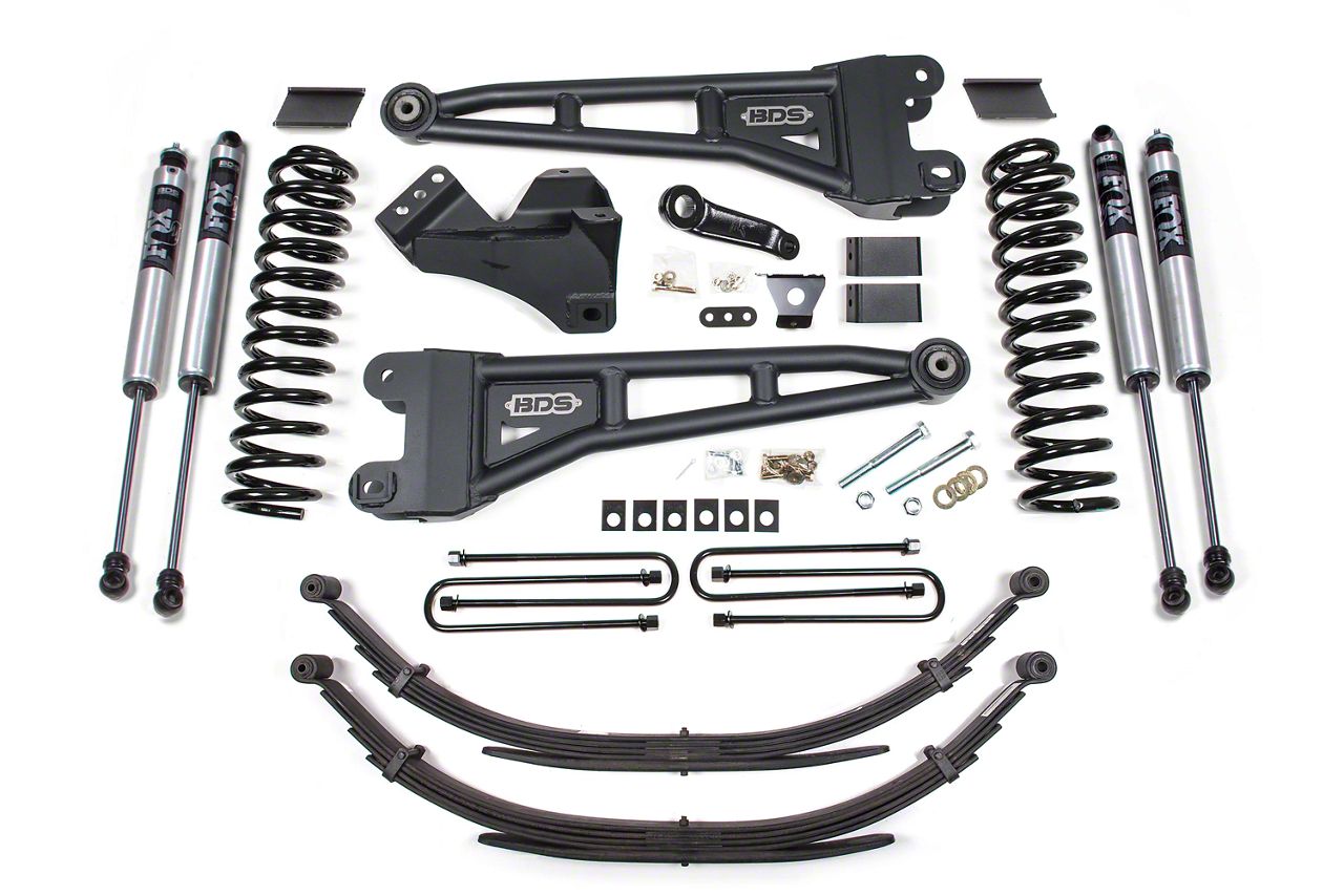 Application. This BDS 4-Inch Radius Arm Suspension Lift Kit with Leaf Springs and FOX 2.0 Performance Shocks fits 2011-2016 4WD 6.2L Ford F-250 Super Duty models.