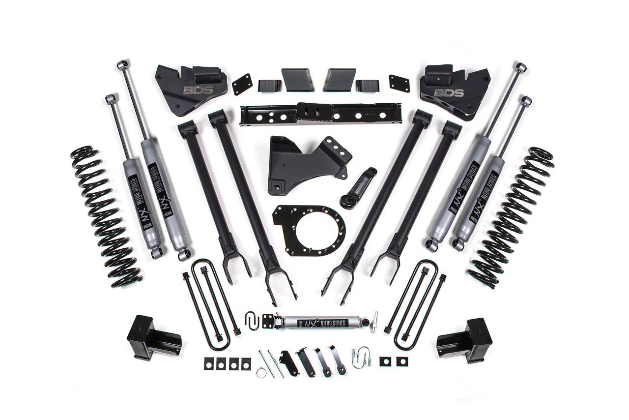 Installation. Putting this BDS 7-Inch 4-Link Suspension Lift Kit with NX2 Nitro Shocks on your 4WD 6.7L Powerstroke F-250 Super Duty takes a day to install.