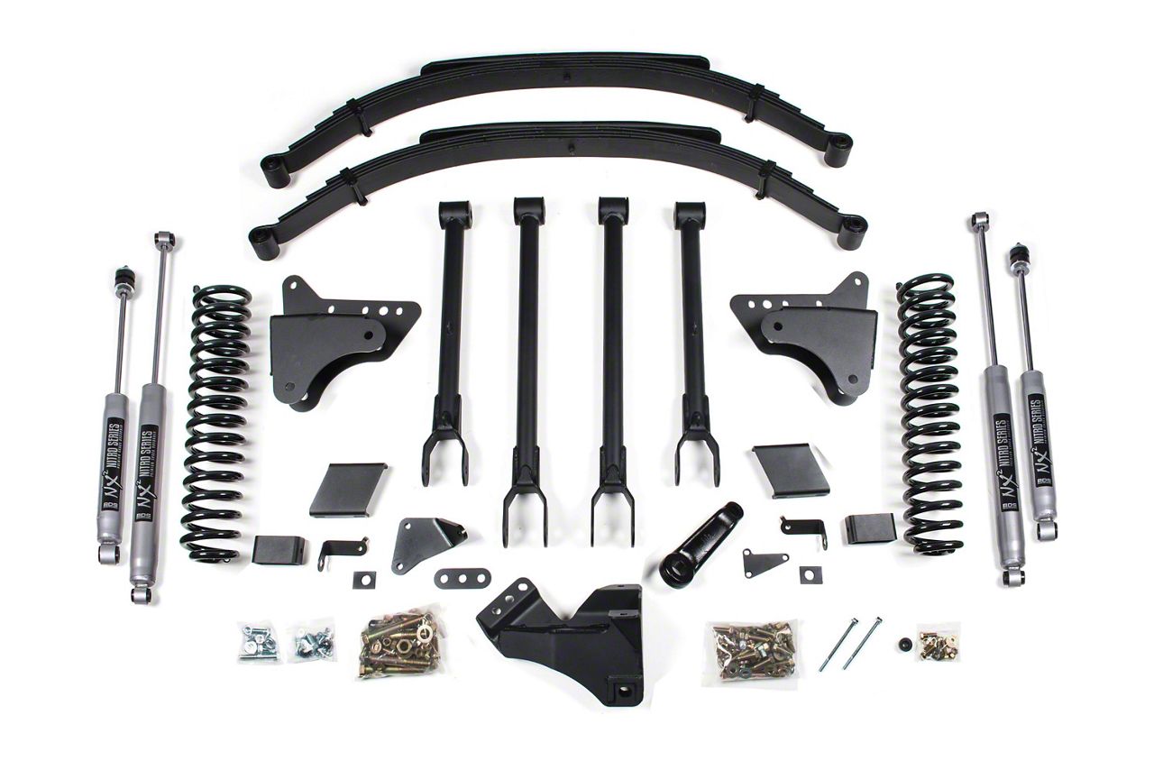 Engineered with Specific Properties. The BDS 8-Inch 4-Link Conversion Suspension Lift Kit with NX2 Nitro Shocks is designed to improve your 6.7L Powerstroke Ford F-250 Super Duty's off-road and on-road handling capabilities. Engineered with vehicle-specific properties, it provides superior lift and durability, ensuring a smoother and more stable driving experience.