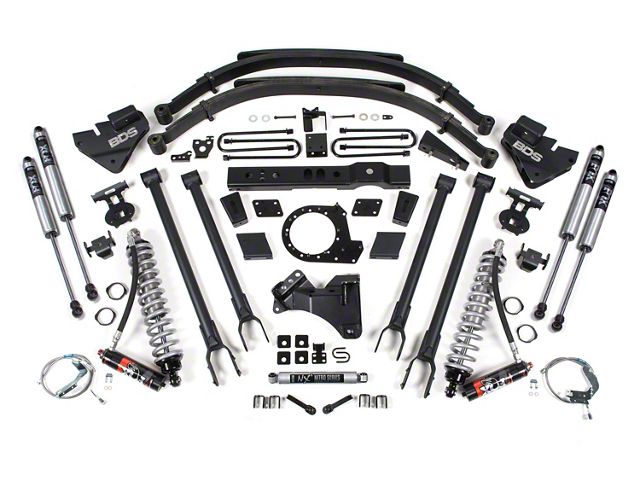 Application. This BDS 8-Inch 4-Link Suspension Lift Kit with Leaf Springs, FOX 2.5 Performance Elite Coil-Overs, and 2.0 Performance Shocks fits 2017-2019 4WD 6.7L Powerstroke F-250 Super Duty.