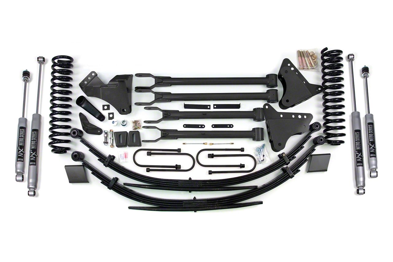 Application. This BDS 8-Inch 4-Link Suspension Lift Kit with Rear Leaf Springs and NX2 Nitro Shocks fits 2008-2010 4WD 5.4L, 6.8L Ford F-250 Super Duty Models.