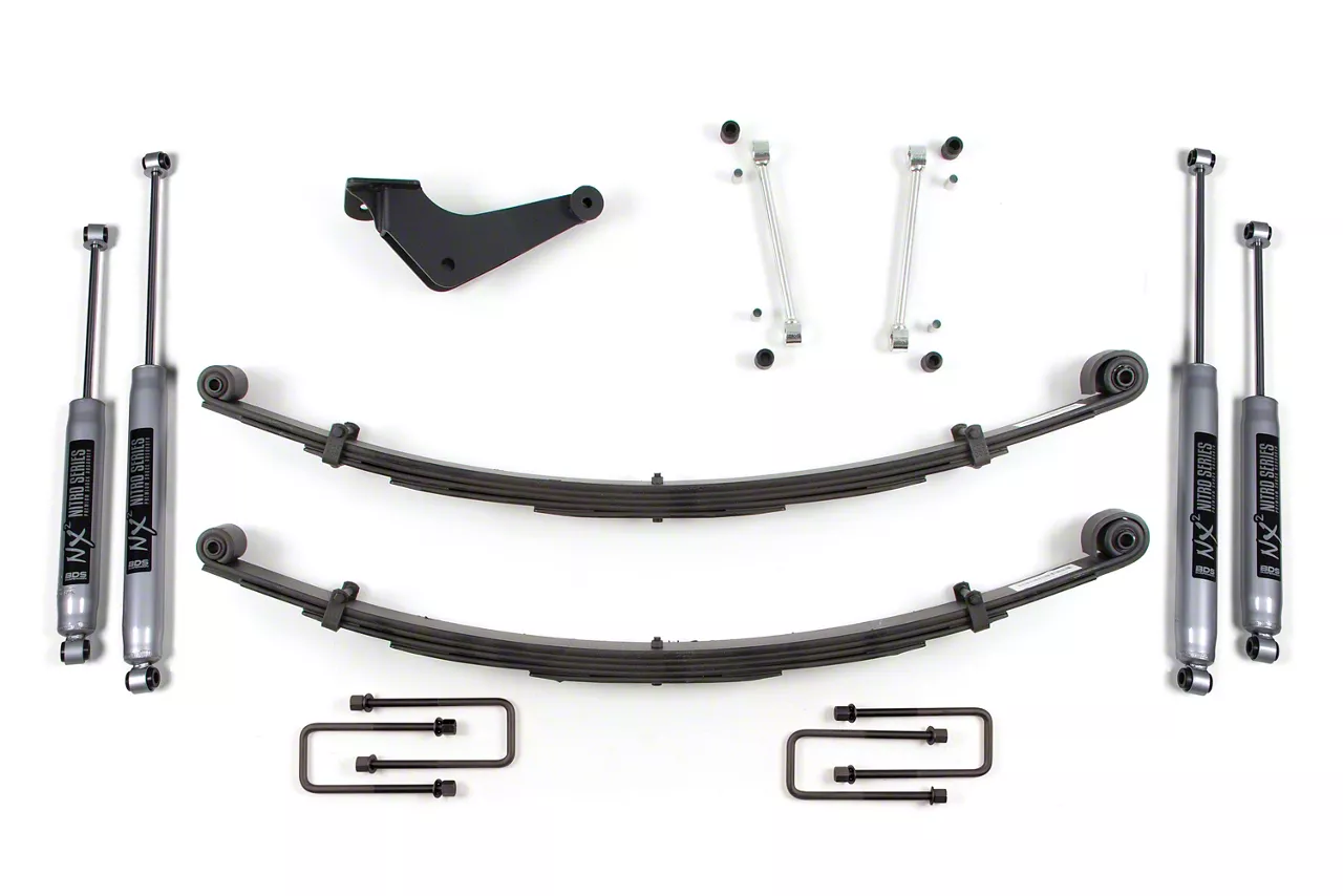 Level and Improve Your Ride. The BDS 2-Inch Front Leveling Kit is an excellent upgrade for your F-350, offering a balanced stance and enhanced handling. This kit raises the front end by 2 inches, eliminating the factory rake and giving your truck a level appearance. The included NX2 Nitro Shocks ensure a smoother ride with improved damping performance, whether on the highway or the trails.