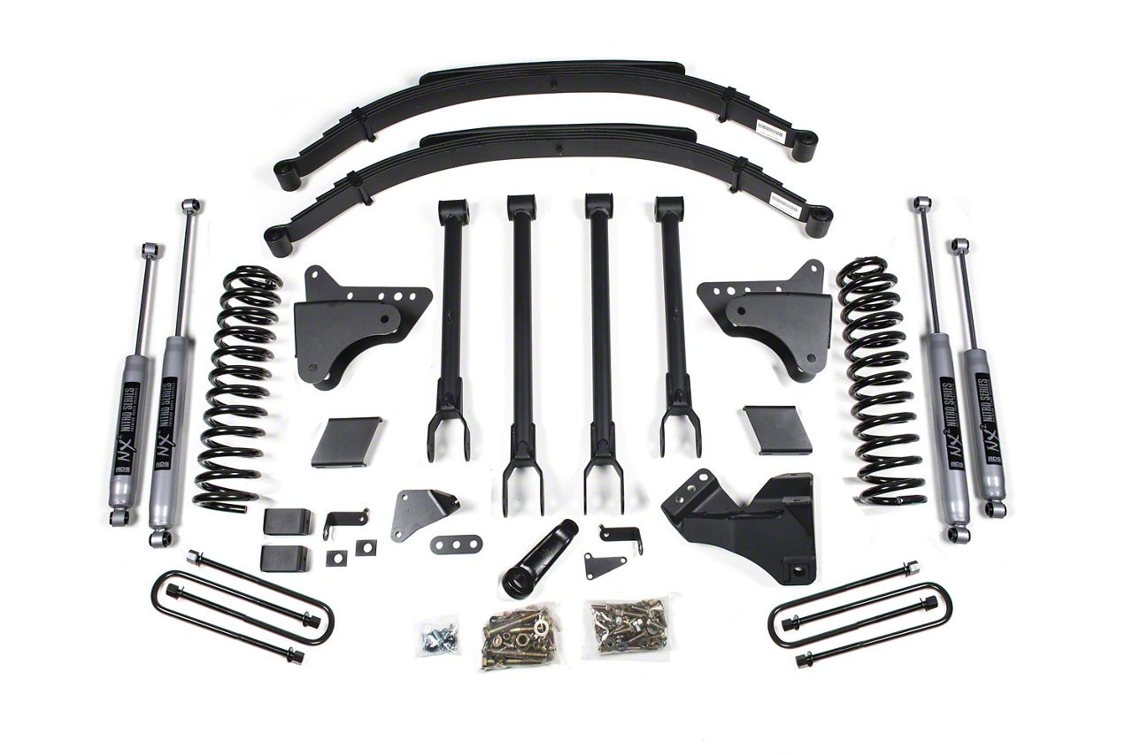 Enhanced Suspension Performance. Upgrade your truck's capabilities with the BDS 4-Link Suspension Lift Kit. Designed for 2011-2016 4WD 6.7L Powerstroke Ford F-350 Super Duty SRW models with factory 2-inch lift blocks, this system provides a 6-inch lift, enabling the use of larger tires for superior off-road performance and ground clearance.