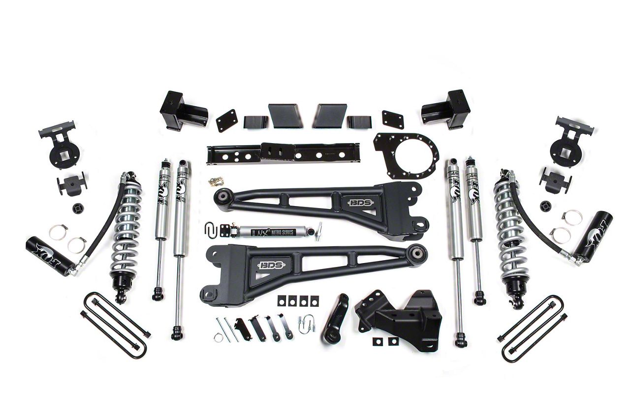 Application. The BDS 7-Inch Coil-Over Radius Arm Suspension Lift Kit with Rear Lift Blocks and Fox Shocks fits 2020-2022 4WD 6.7L PowerStroke F-350 Super Duty.